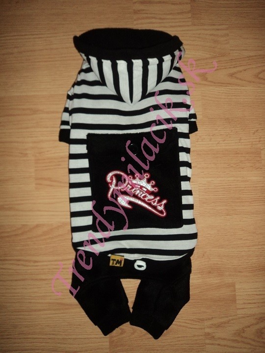 Nádherná súprava kombinovaná prúžkovanou mikinou s vreckom. Vrecko zdobí nažehľovačka Princess v červeno-striebornej farbe.